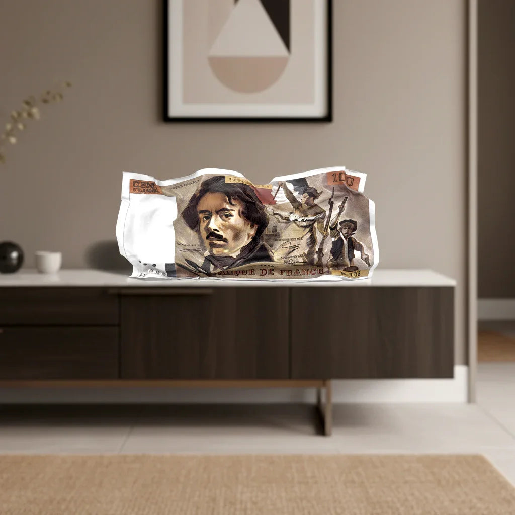 Le concept du tableau froissé constitue une démarche artistique propre à Luxartis, fondée sur la transformation physique et visuelle d’un visuel en une œuvre sculpturale.