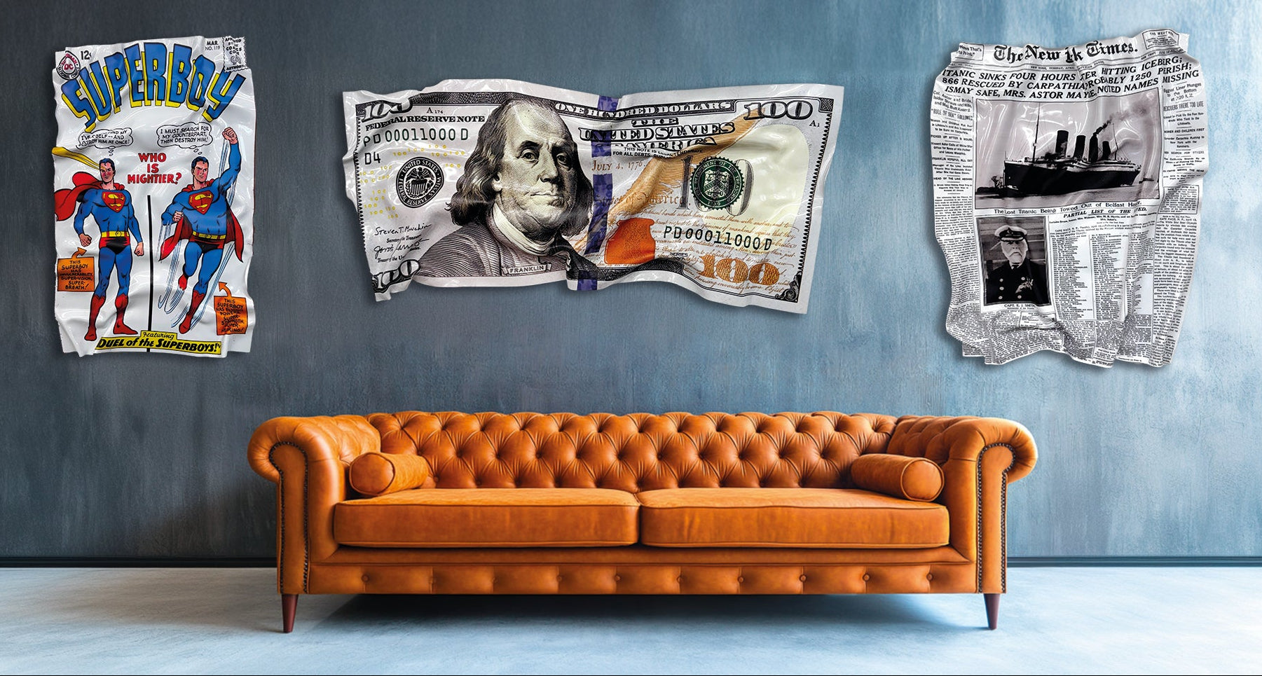 Hemos elegido especializarnos en los cuadros, obras y esculturas arrugadas, una forma de expresión poderosa, audaz y decididamente moderna.